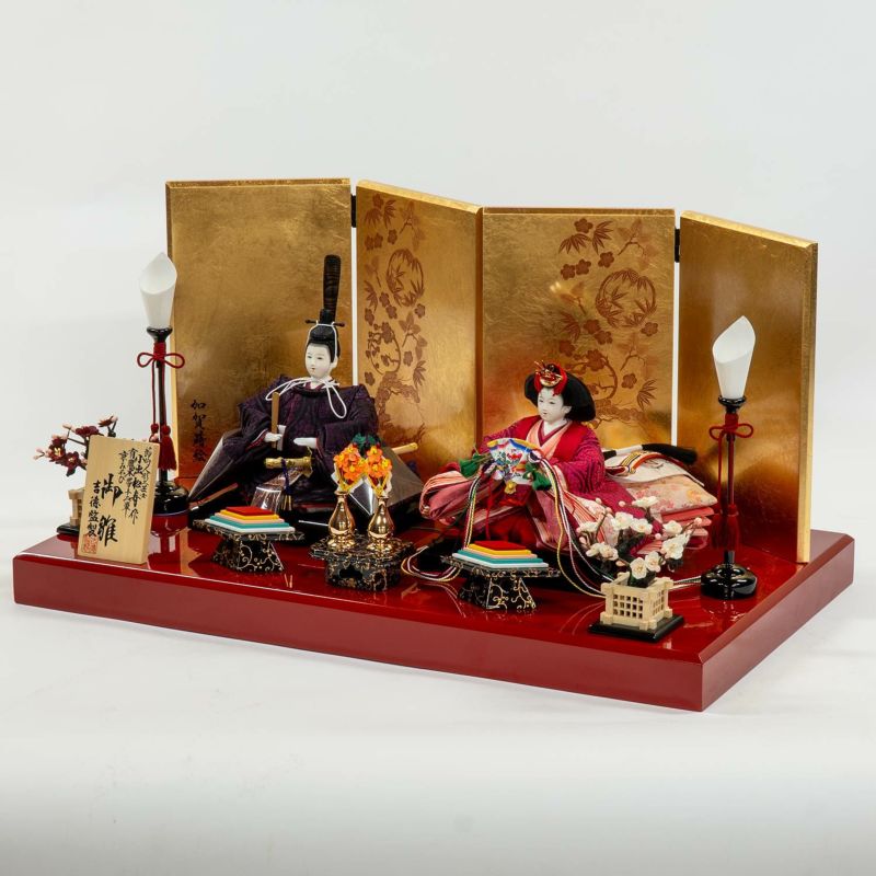 金箔押屏風にとても映える、小出松寿作のお雛様。