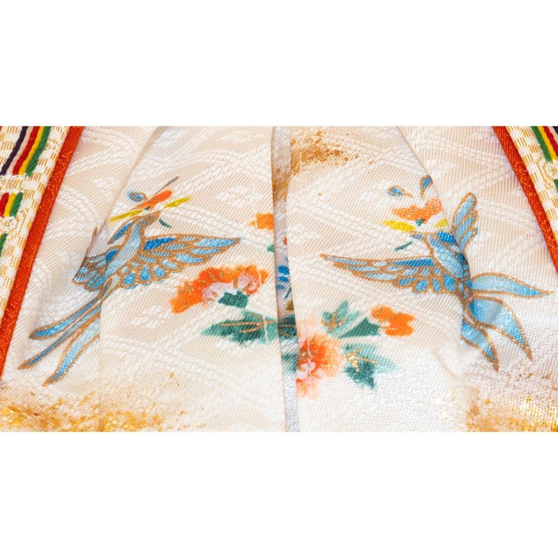 ■湧き出る雲を表現した雲立涌の正絹金襴生地を、松寿の確かな技で衣裳に着せ付け。