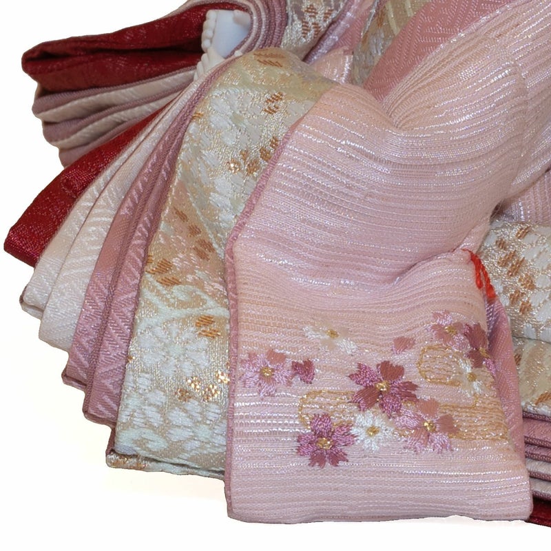 ■女雛も春らしい優しい色合いの衣裳に「桜柄」を刺繍。