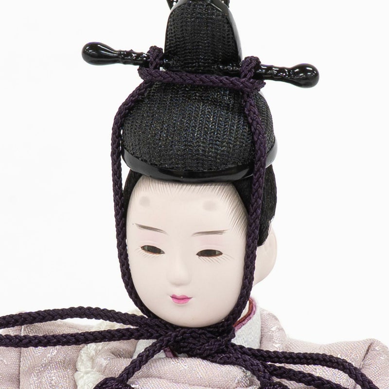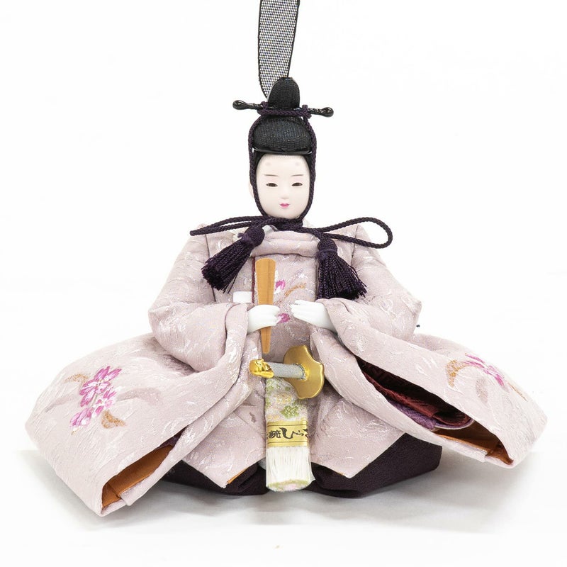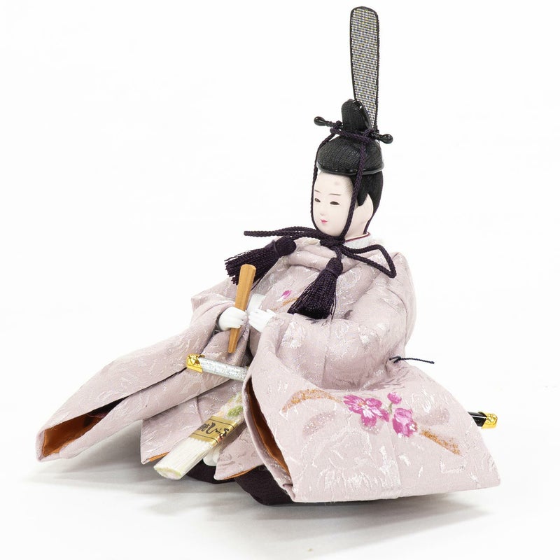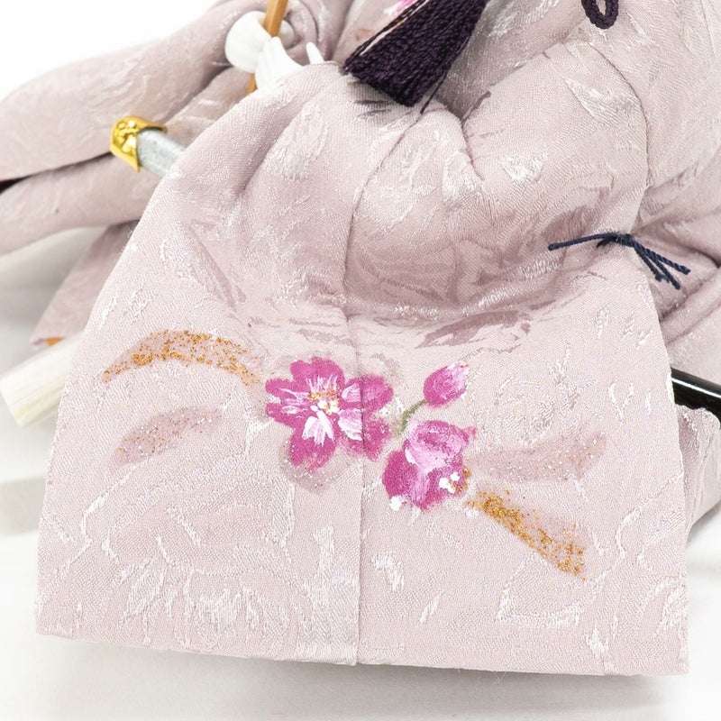 ■男雛の衣裳は淡い紫色に手書きで桜をデザイン。