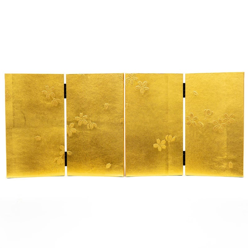 ■箔押しの屏風には舞桜をデザイン。