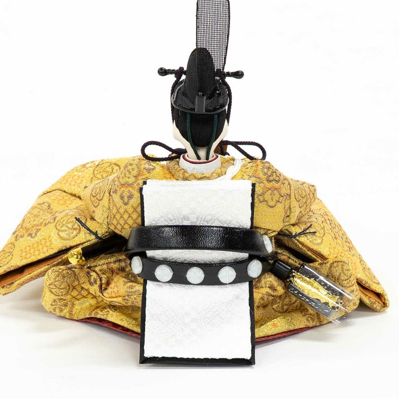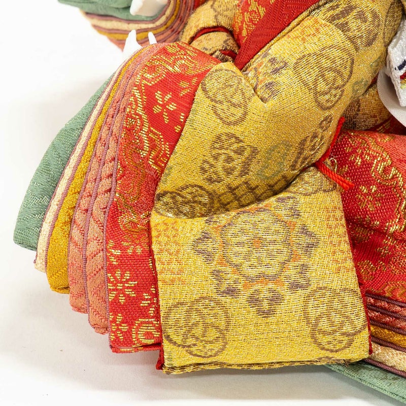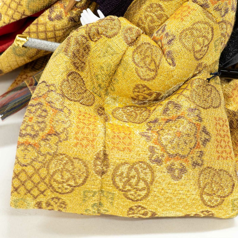 ■お人形には上品な色合いの正絹生地に、吉祥文様を織り出した衣裳を着せ付けました。