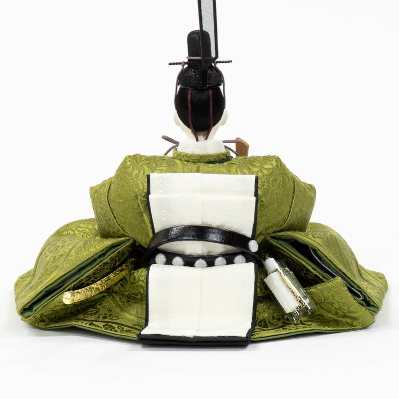 ■男雛には正絹唐織の立涌文様の衣裳を着せ付け。