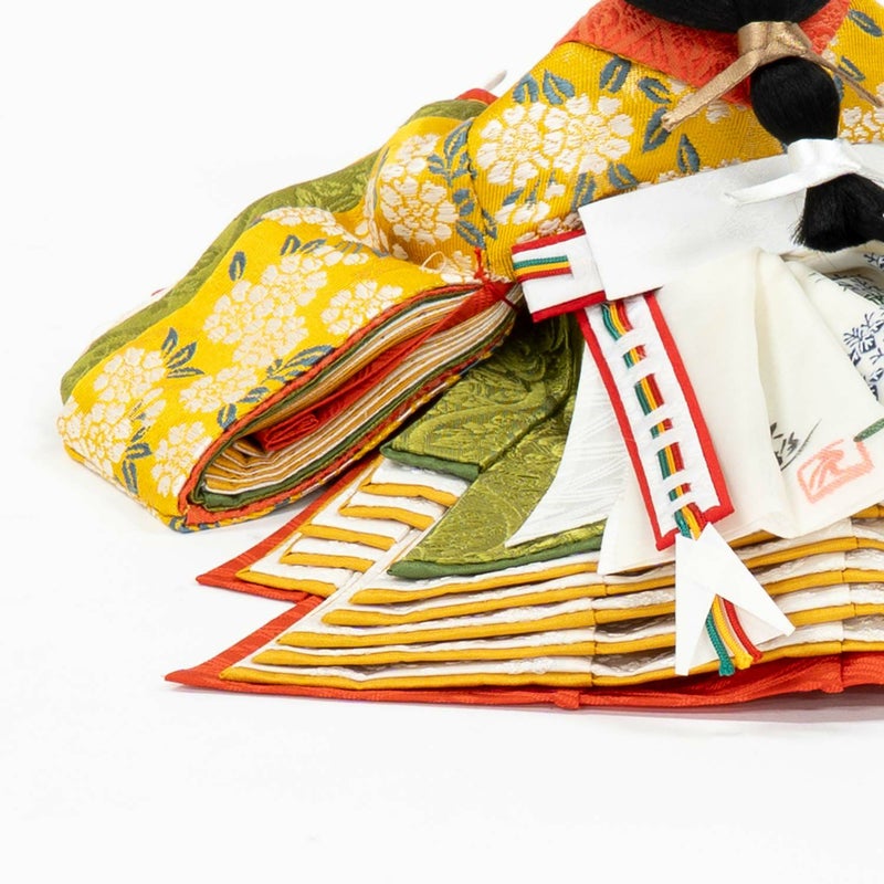 素材は厳選された正絹を使用し、本物に限りなく近い仕立て方、着せ方で創られており、たとえ百年たっても形くずれいたしません。