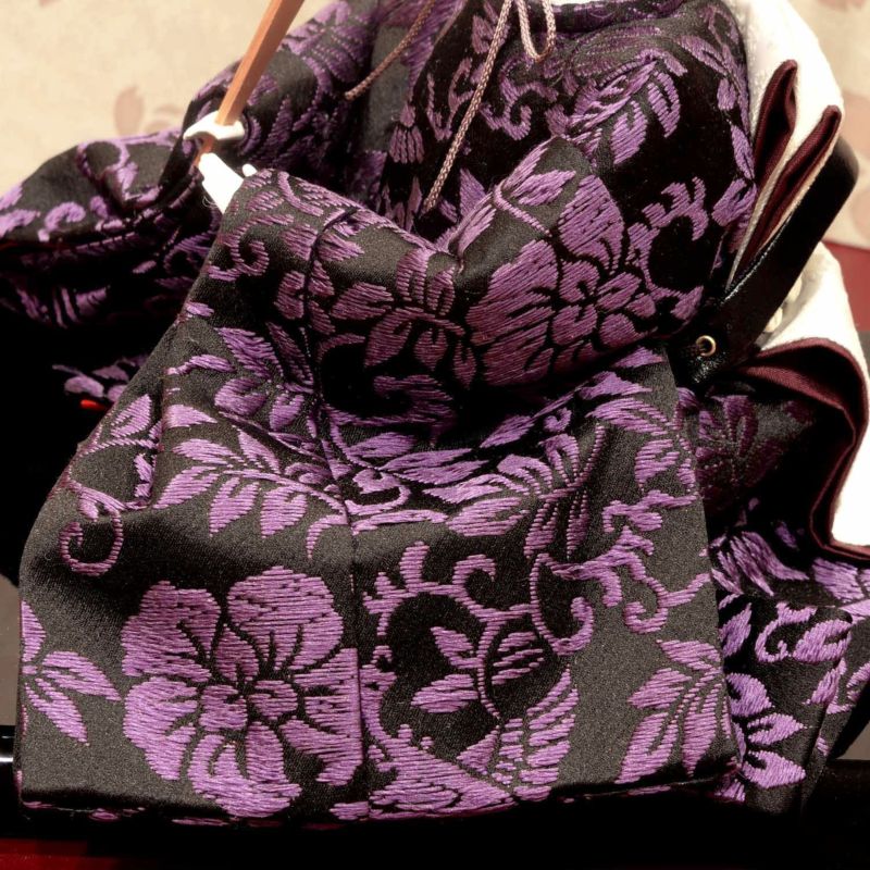 ■紫色の正絹牡丹唐草衣裳の男雛。