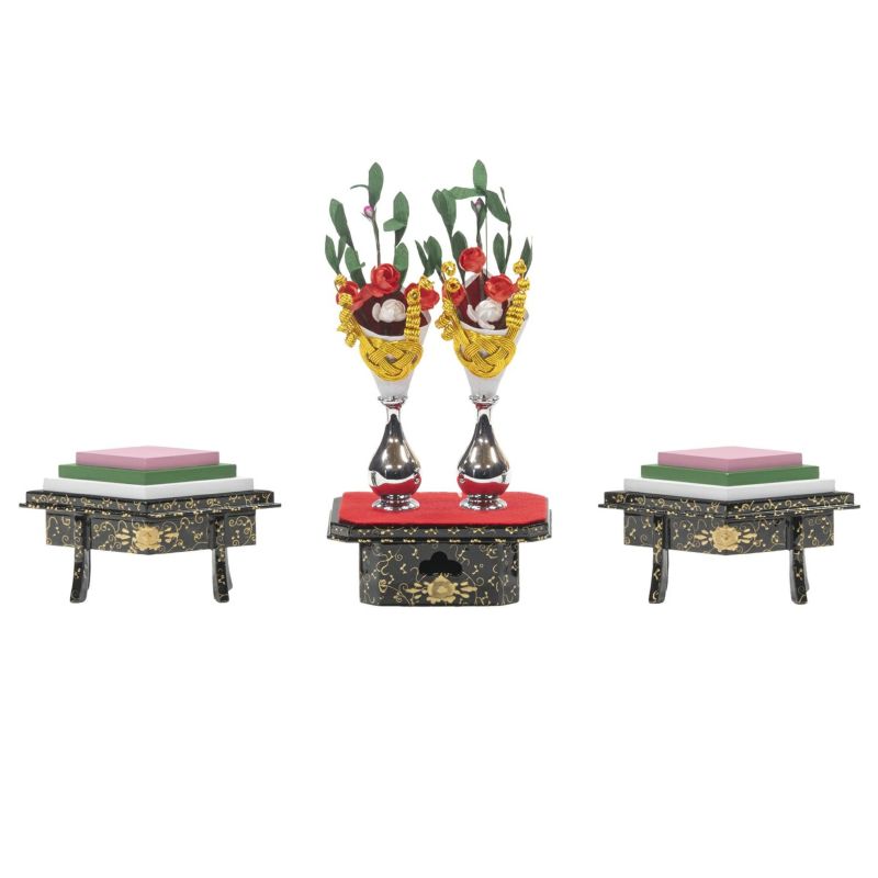 ■風格漂うお人形が引き立つように箔押しの金屏風を用いました。