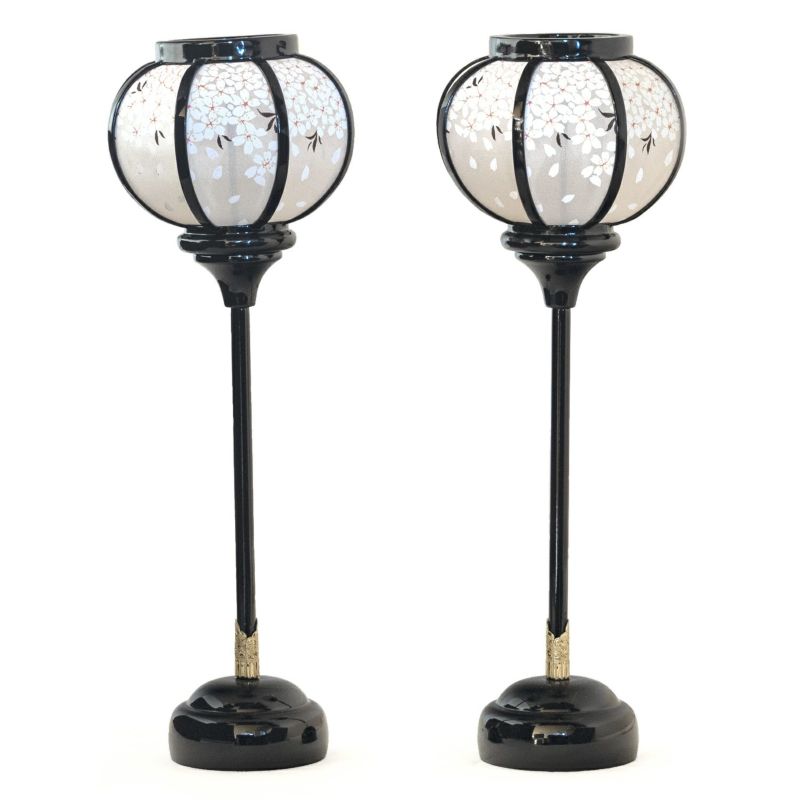 ■雪洞は、桜の花を描いたコードレスの電池式で、明かりがともります。