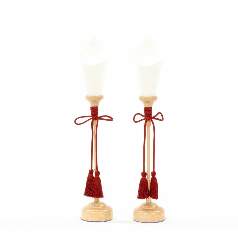 ■燭台は木肌色のコードレスタイプの電池式で、明かりがともります。