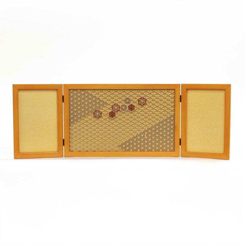 ■格子に吉祥文様の麻の葉の細工を施した屏風。