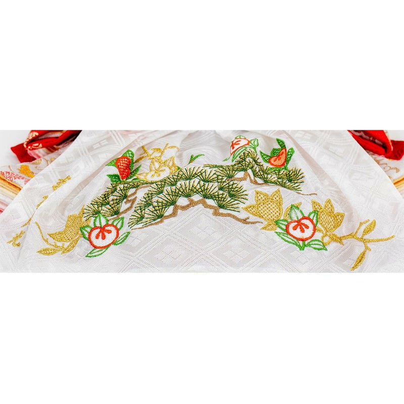 ■裳には松と橙を刺繍。橙は「代々」に通じることから縁起がよいとされています。