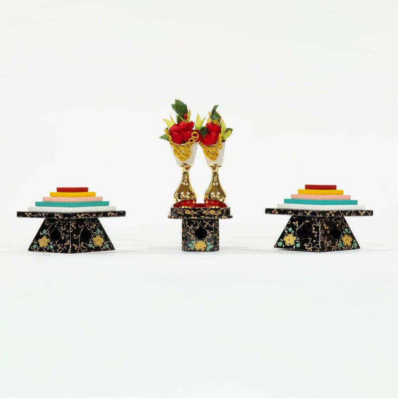 ■お人形をより引き立たせる箔押しの金屏風をセット。