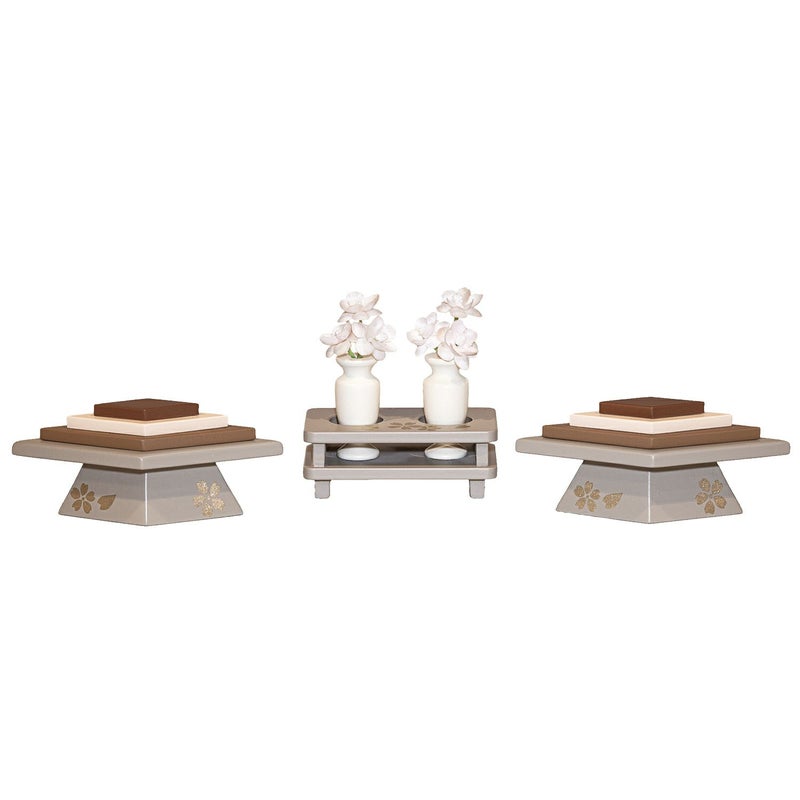 ■全体のカラーに合わせた優しい色合いの菱台に三方をセット。
