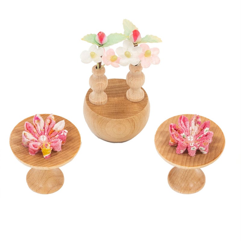 ■お道具は可愛らしいお花を模したつまみ細工をセット。