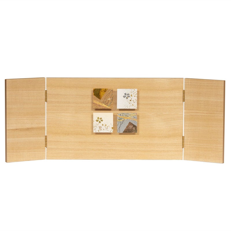 ■木目の屏風には金彩レリーフを用いました。