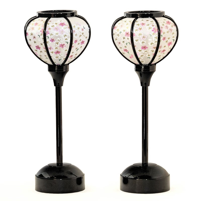 ■雪洞は、桜の花を描いたコードレスの電池式で、明かりがともります。