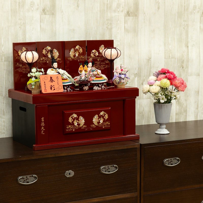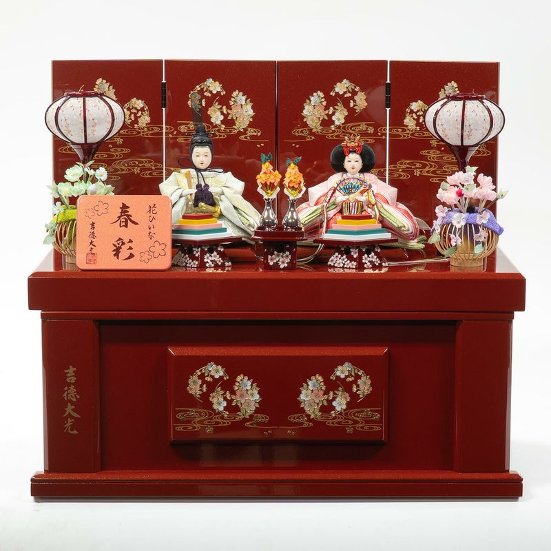 テーマモチーフである「桜」を随所にちりばめた、吉徳を代表とする人気シリーズ春彩の収納箱飾り。