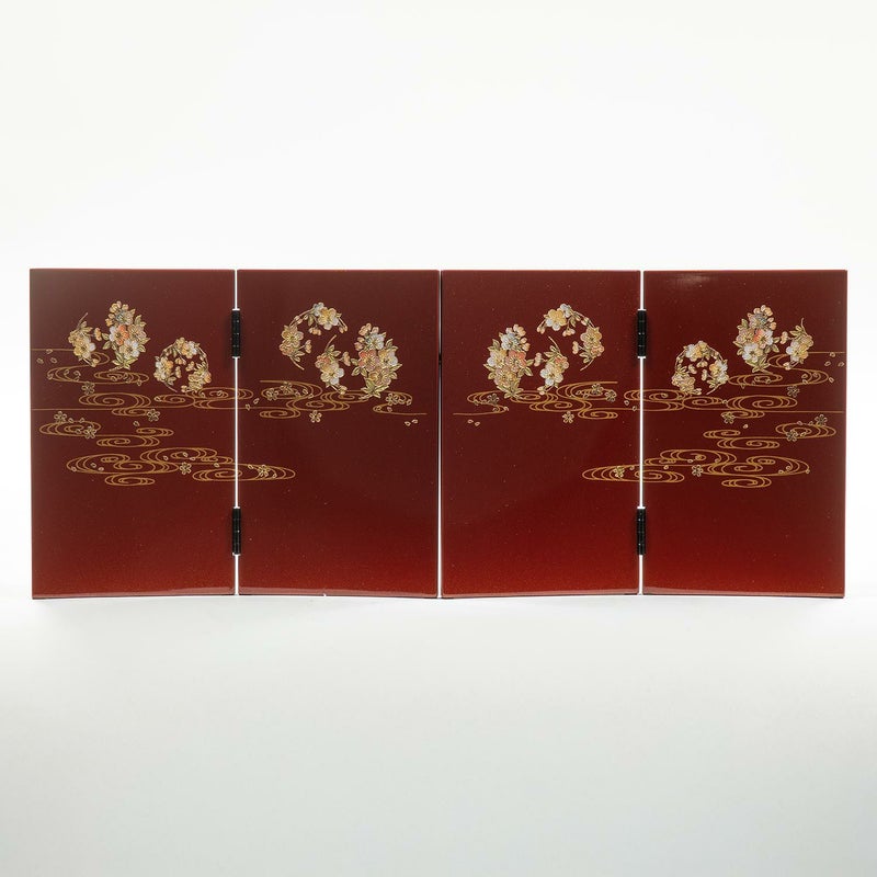 ■茜色屏風は蒔絵で桜を描きました。
