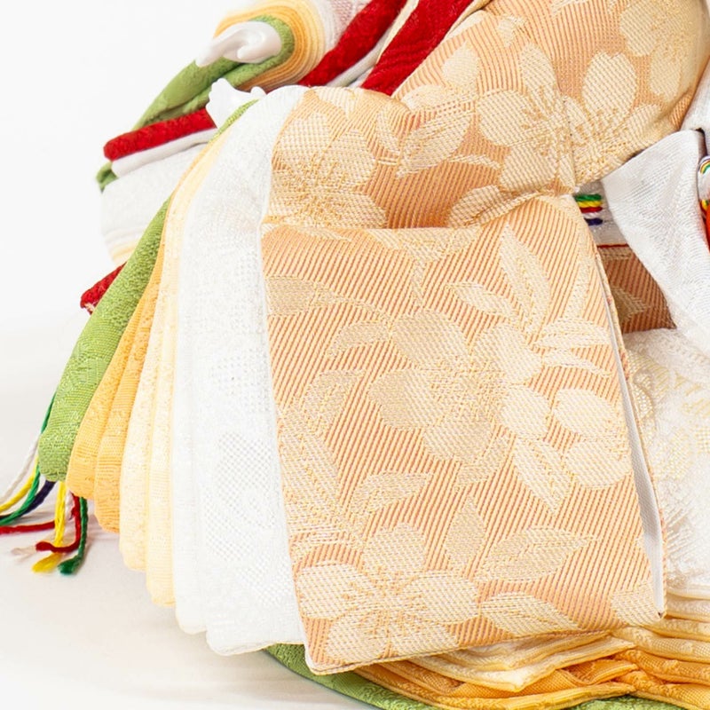 ■お人形には、「不断桜模様」を織り出した男雛、女雛に正絹衣裳を着せ付け。