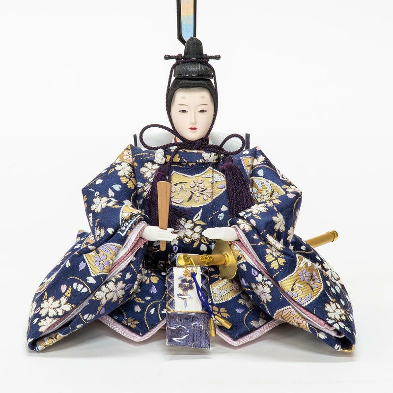 ■男雛には紺地に桜柄の衣裳を着せ付け。