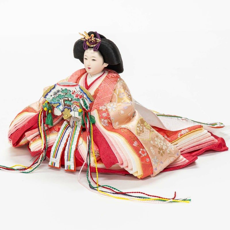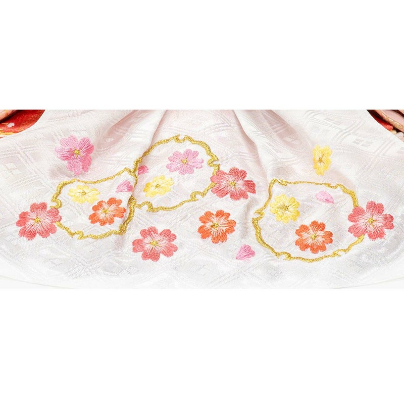 ■女雛は淡いピンク地に桜柄を施した衣裳を着せ付け。
