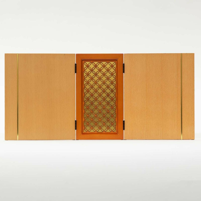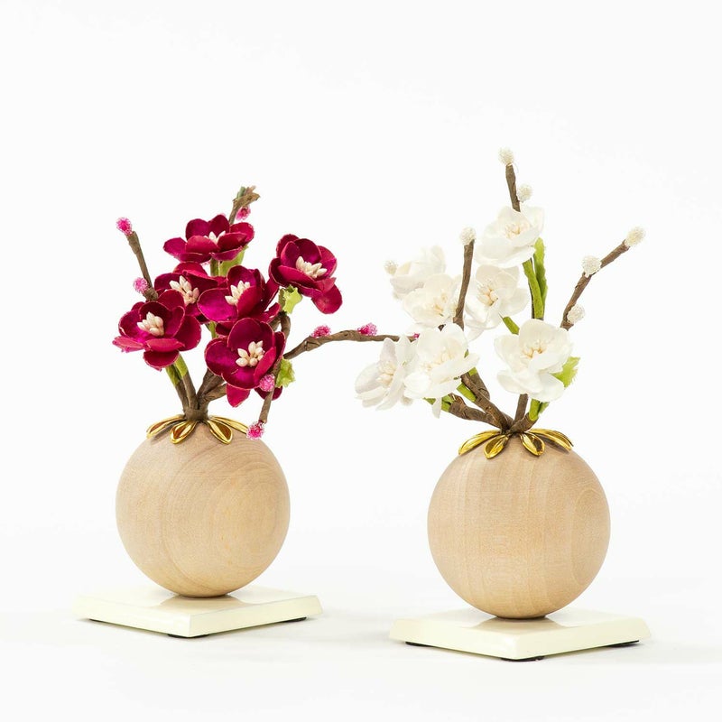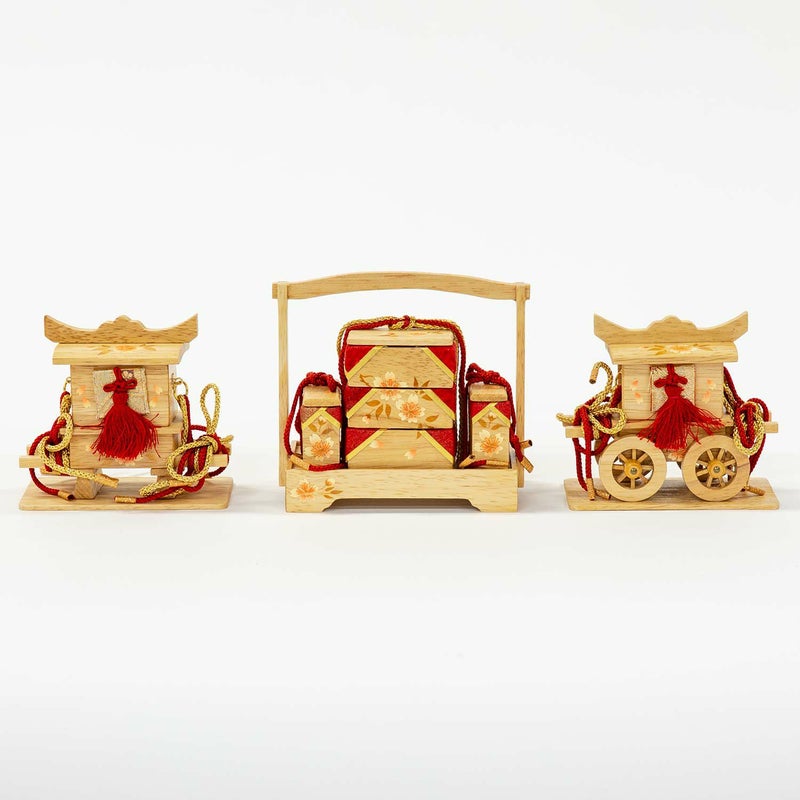 ■全体の色合いにあわせた白木に桜を描いた雛道具をセット。