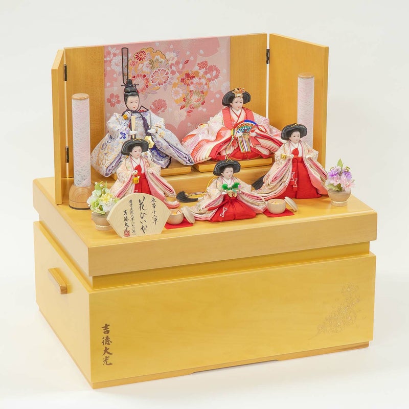 ■飾りやすく、しまいやすい、コンパクトながらも華やかさ溢れるフタ式五人収納箱飾り。