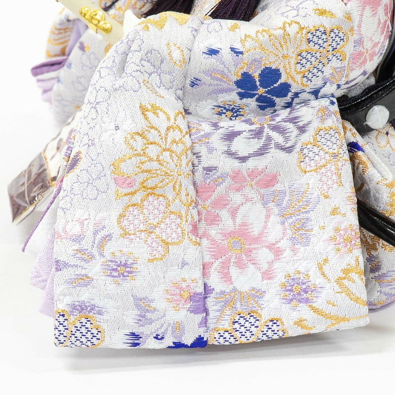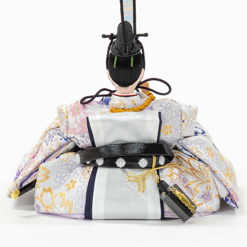 ■男雛、女雛には大きな桜柄を織り込んだ衣裳を着せ付けました。