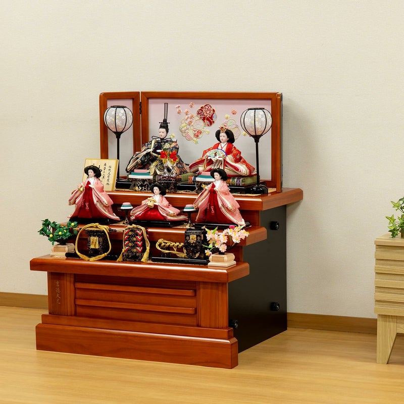 明るい木のぬくもりを感じられる三段五人飾りです。