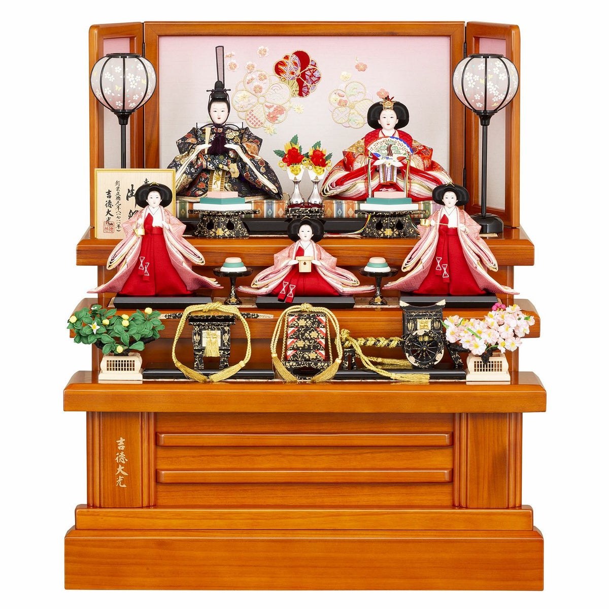 男雛・女雛と三人官女の揃った、三段・五人飾りの格式高い雛人形です。