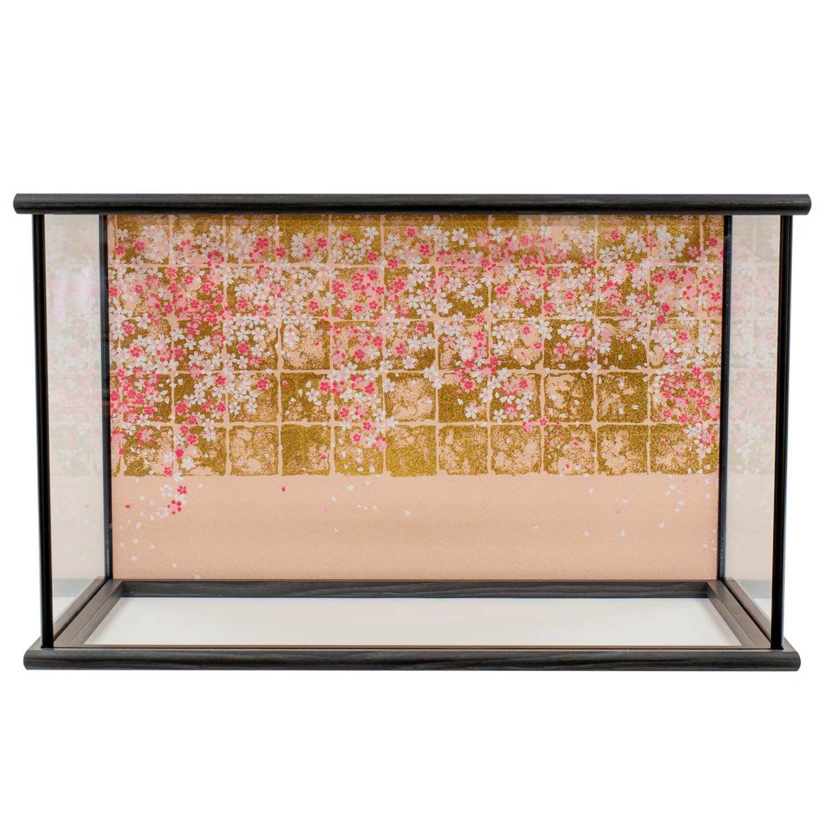 お人形やお道具がすべてガラスやアクリル製のケースの中に固定された、出し入れしやすい雛人形です。