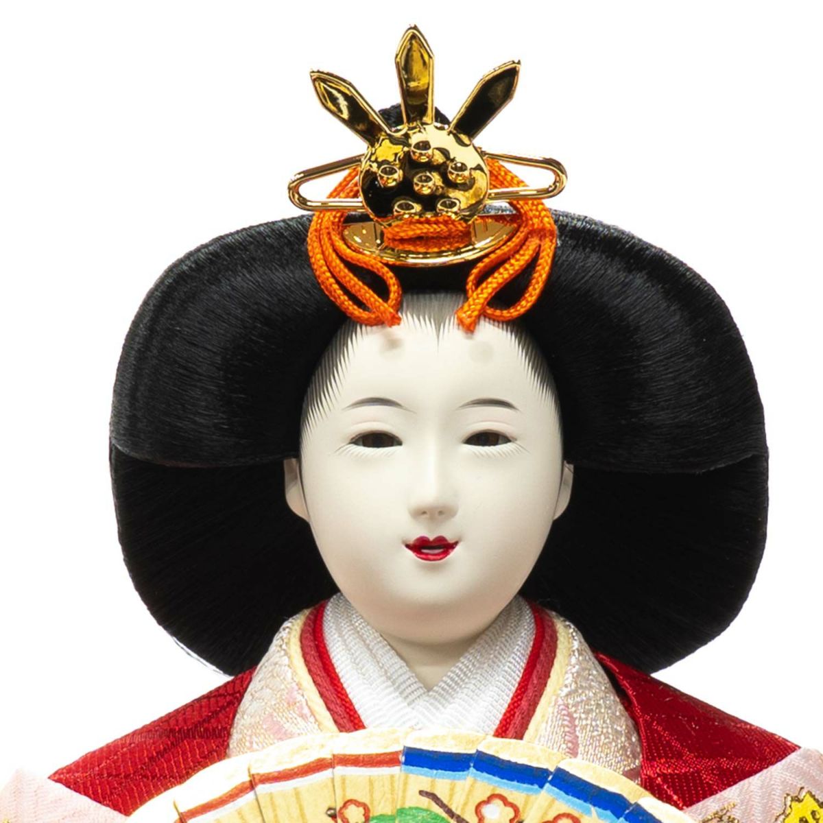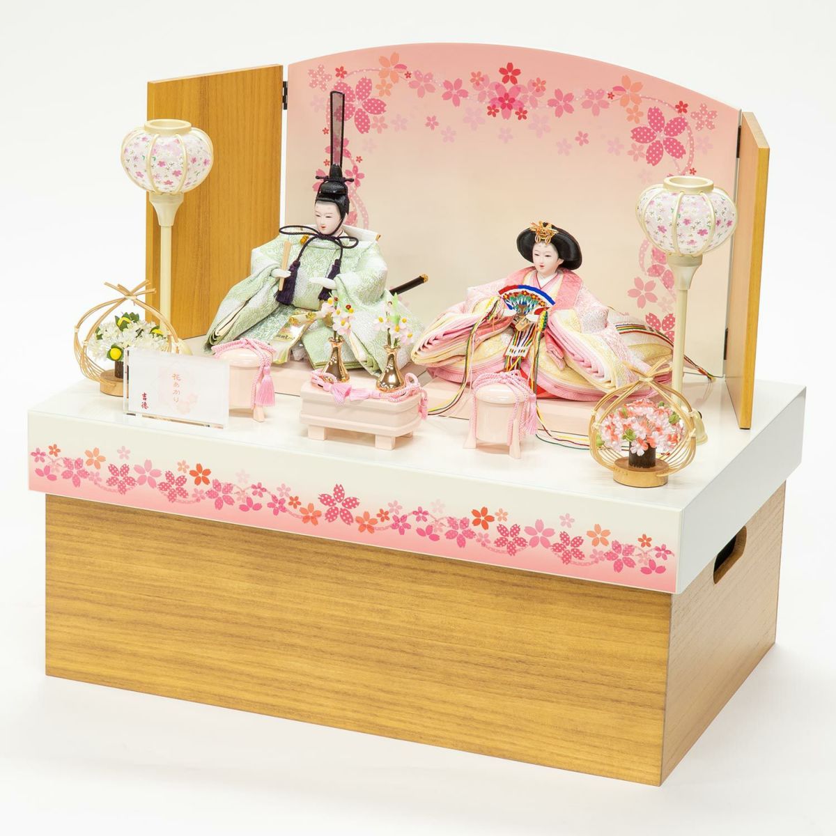飾り台となる箱の中にお人形やお道具がすべて収納できる、スペースを取らない雛人形です。