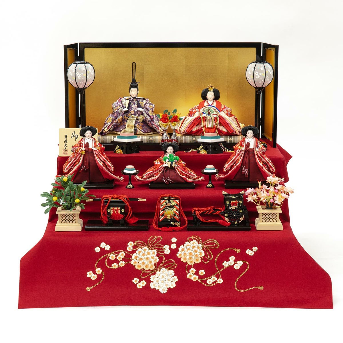 男雛・女雛と三人官女の揃った、三段・五人飾りの格式高い雛人形です。