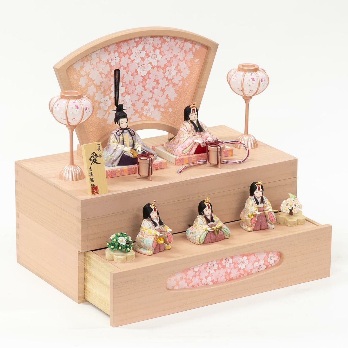 【雛人形】小三五親王小芥子官女五人収納箱飾り 春窓雛