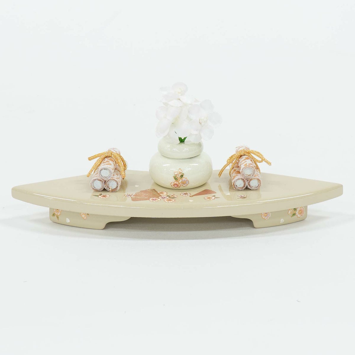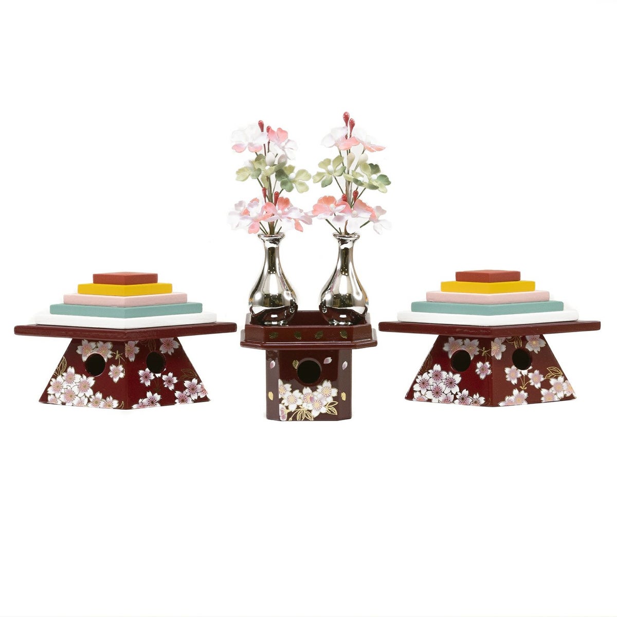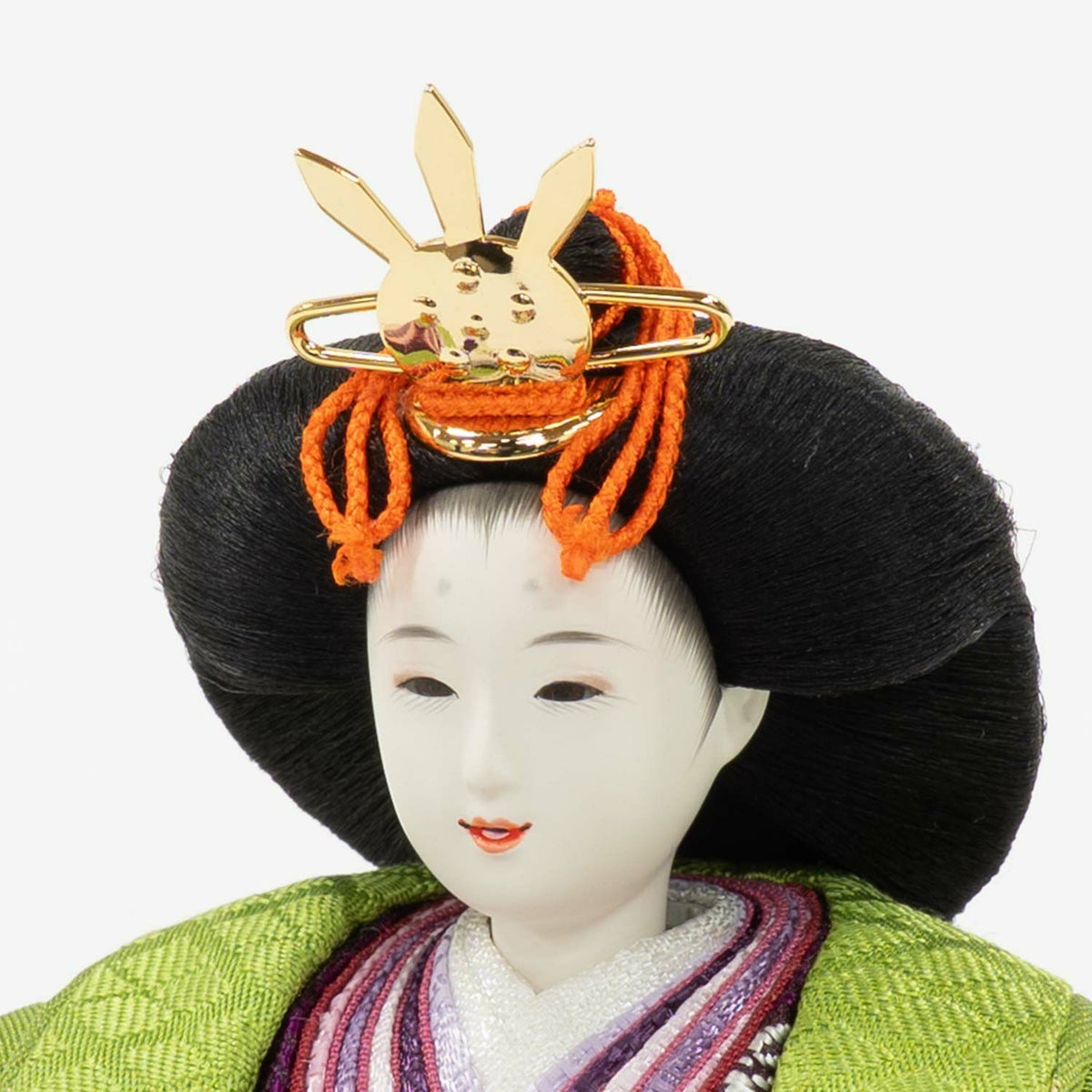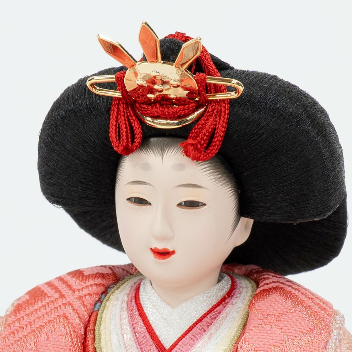 飾り台となる箱の中にお人形やお道具がすべて収納できる、スペースを取らない雛人形です。