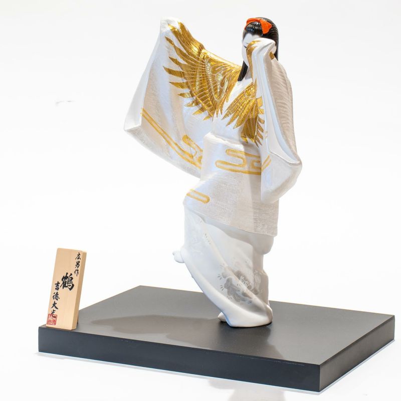鶴が描かれている着物をまとった女性の姿で舞を踊っている姿を表現しています。上品で落ち着いた雰囲気のある一品です。
