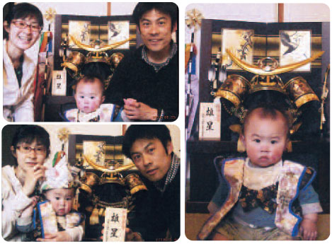 朱都、家族みんなで、君に一番似合う兜を選んであげたよ。この兜に見守られながら、明るく、みんなに好かれる男の子に育ってね。