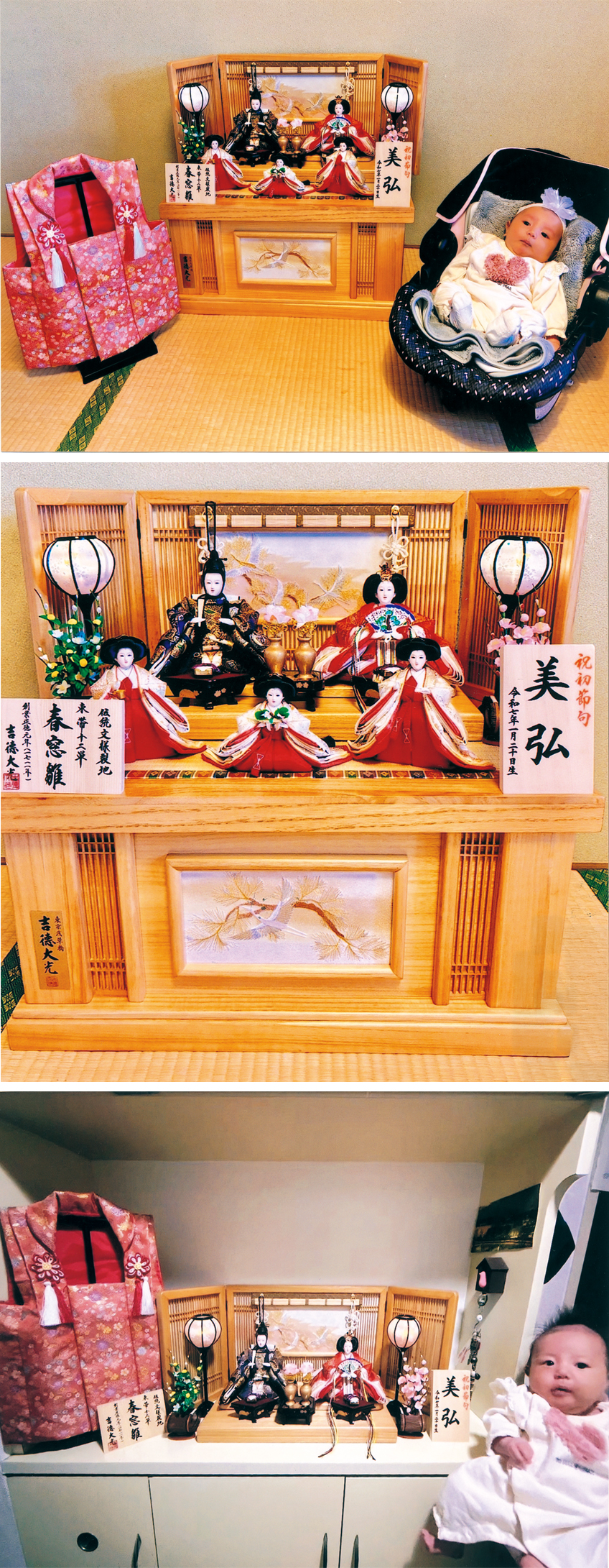 初めは人形の良し悪しも全く判りませんでしたが、一日中店舗内を案内して頂くと、お顔や装飾などで印象が全く異なる雛人形の奥深さに胸を撃たれ、即決できず。一晩熟考し、「これにしよう!」と決めた上で、翌日の閉店間近の店舗へ伺うも、悩み抜いて決めていた親王飾りはその日に売り切れており、一期一会を痛感。店員さんのご厚意で別の親王飾りを予約して頂きましたが、どこか不完全燃焼で帰路に立ちました。このままでは終われない!と、夜通し雛人形をネットで検索し、また翌日に再訪問。今回は仕事で私は訪問できず、妻・義理の両親に想いを託しました。最後は私もテレビ電話を繋いでもらい、購入に参加。大満足の「小出松寿」の親王飾りに出会うことができ、怒涛の三日間連続訪問に有終の美を飾ることができました。