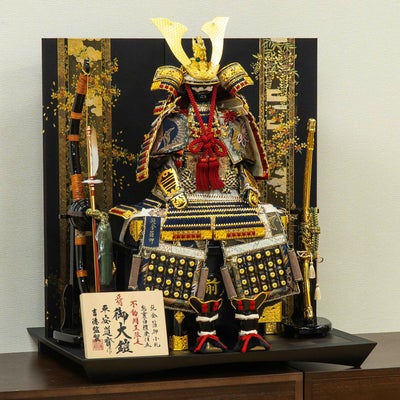 【五月人形】正絹紺肩取縅 純金箔押鎧8号床飾り 平安道齋作のレビューを書く