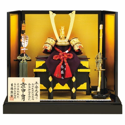 【五月人形】正絹赤絲縅 純金箔押兜10号床飾り 平安光義作のレビューを書く