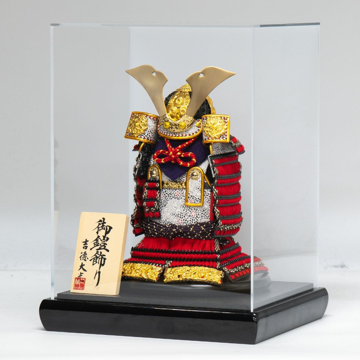 【五月人形】正絹赤絲縅 兜5号収納箱飾り 大越保広作