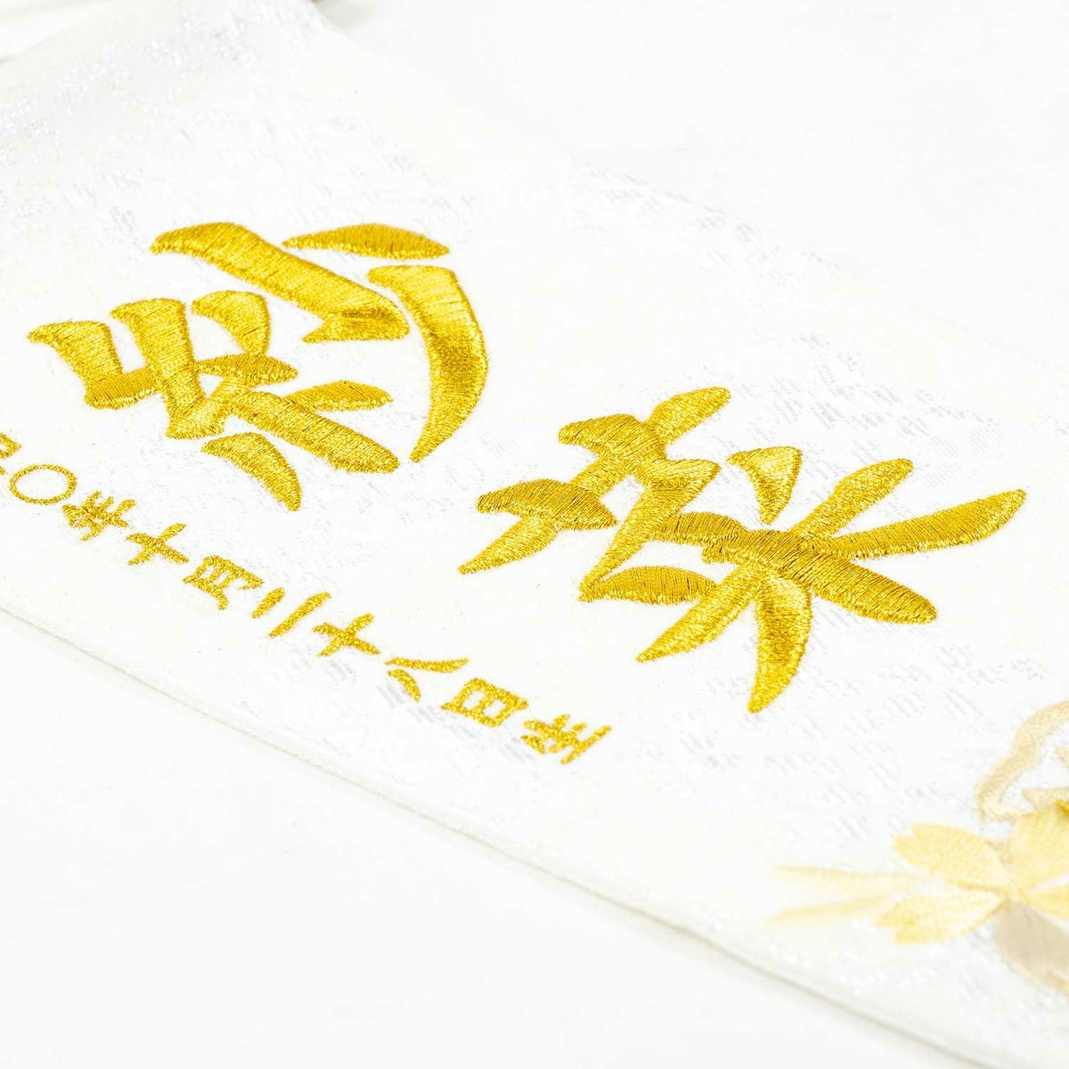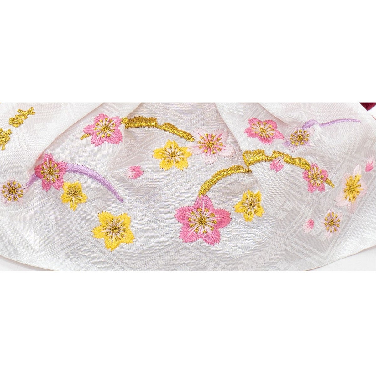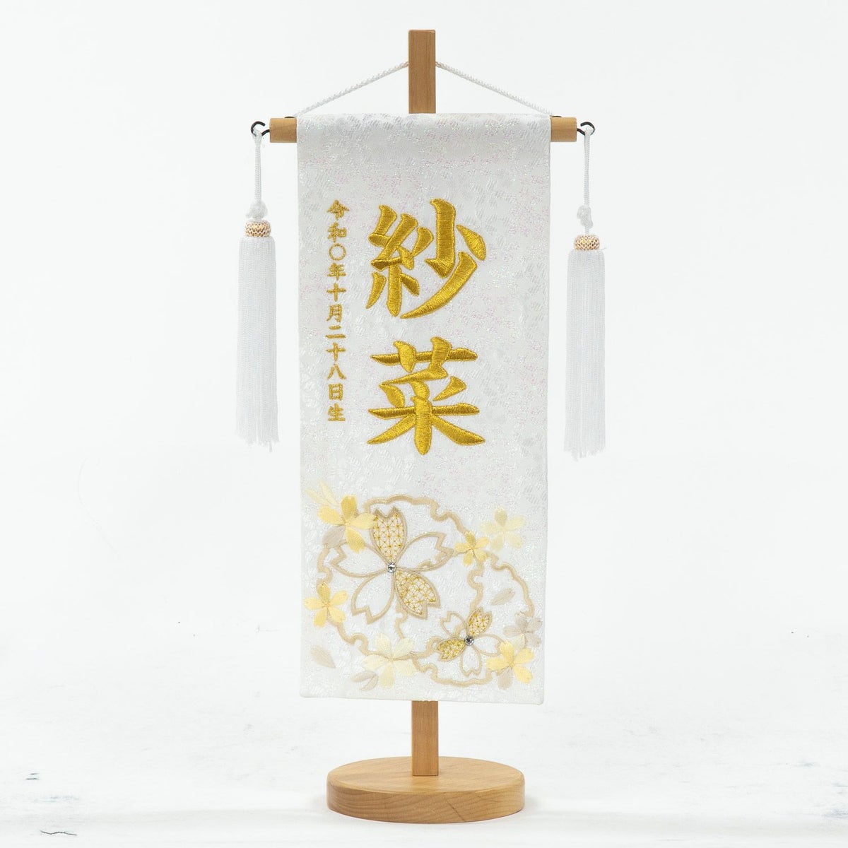 【雛人形】名前旗 金糸刺繍 雪輪に大桜 白 (小)