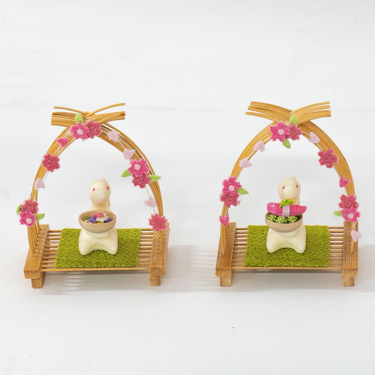 【雛人形】名前旗 親子うさぎ(桃摘み鞠飾り)(特小)