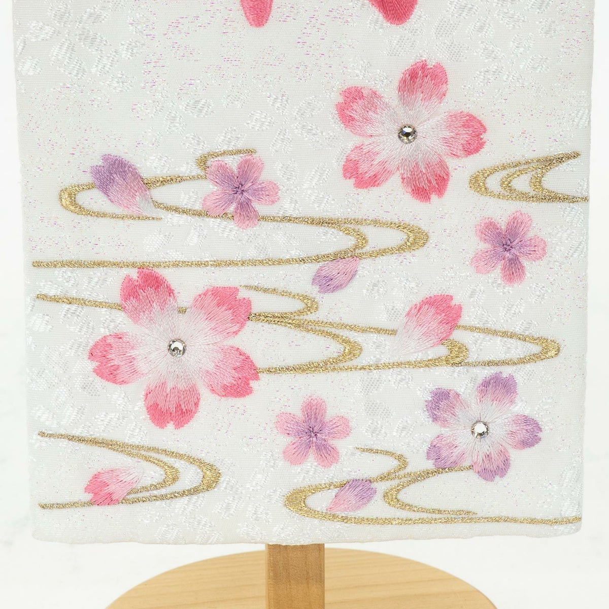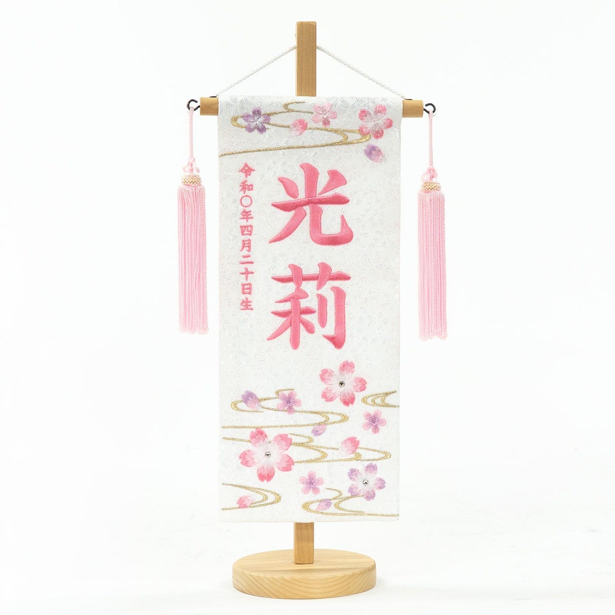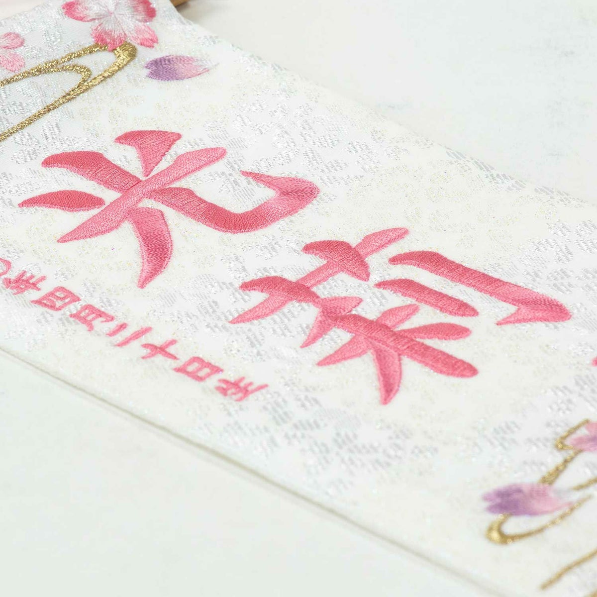 【雛人形】名前旗 ピンク刺繍 ぼかし桜 白 (小)