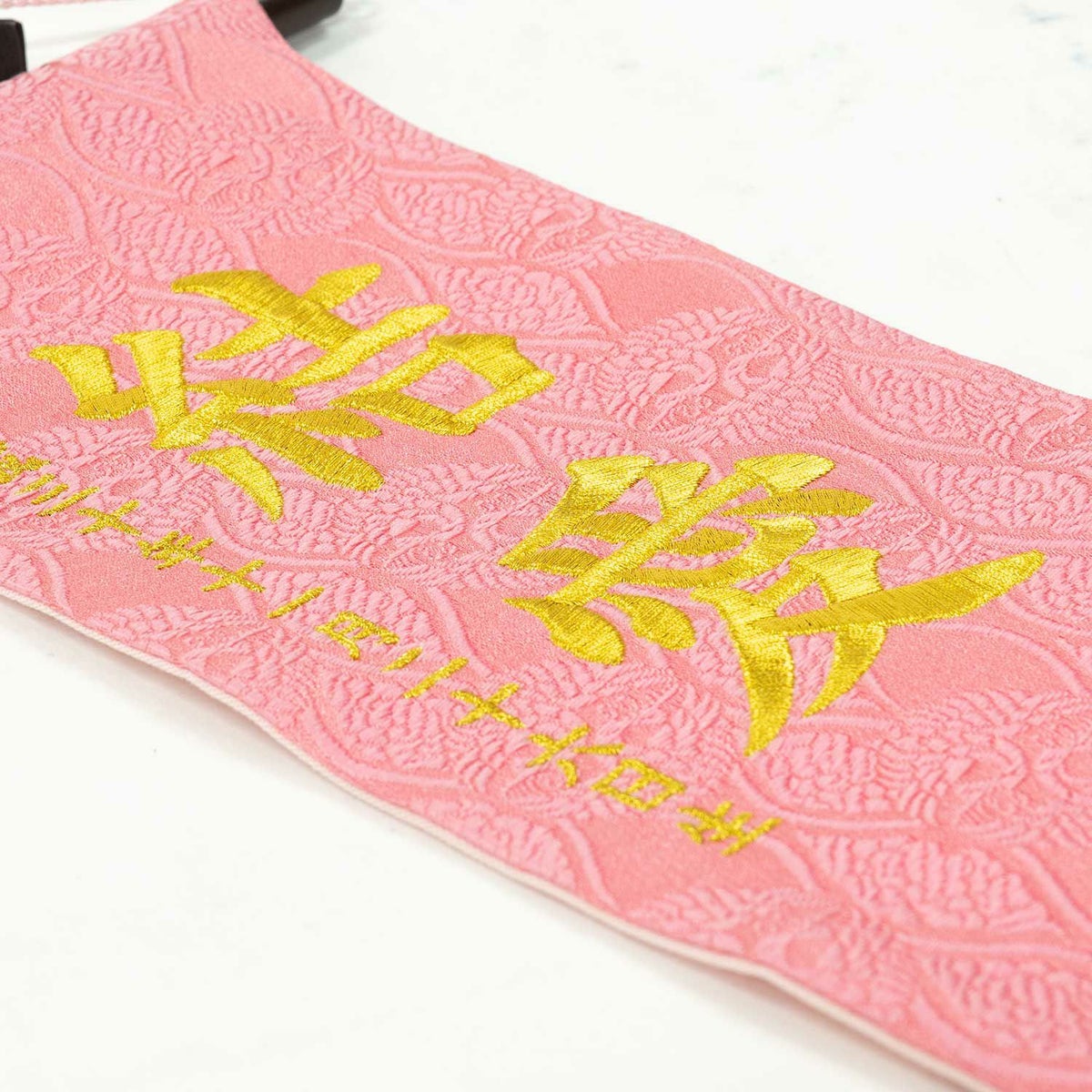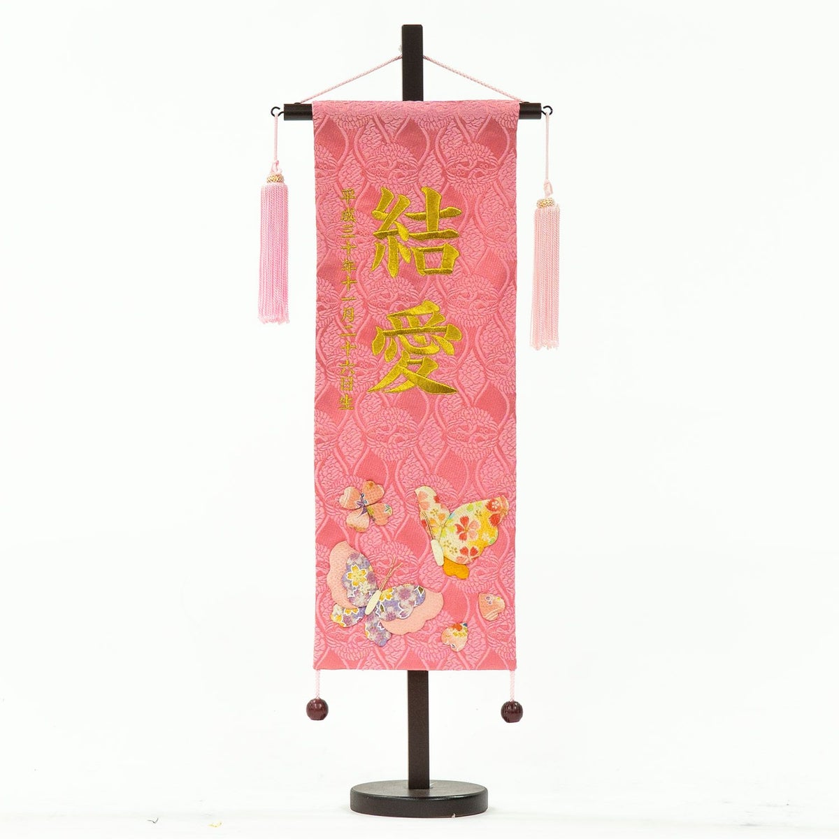 【雛人形】名前旗 金糸刺繍 花と蝶 桃色 (特中)